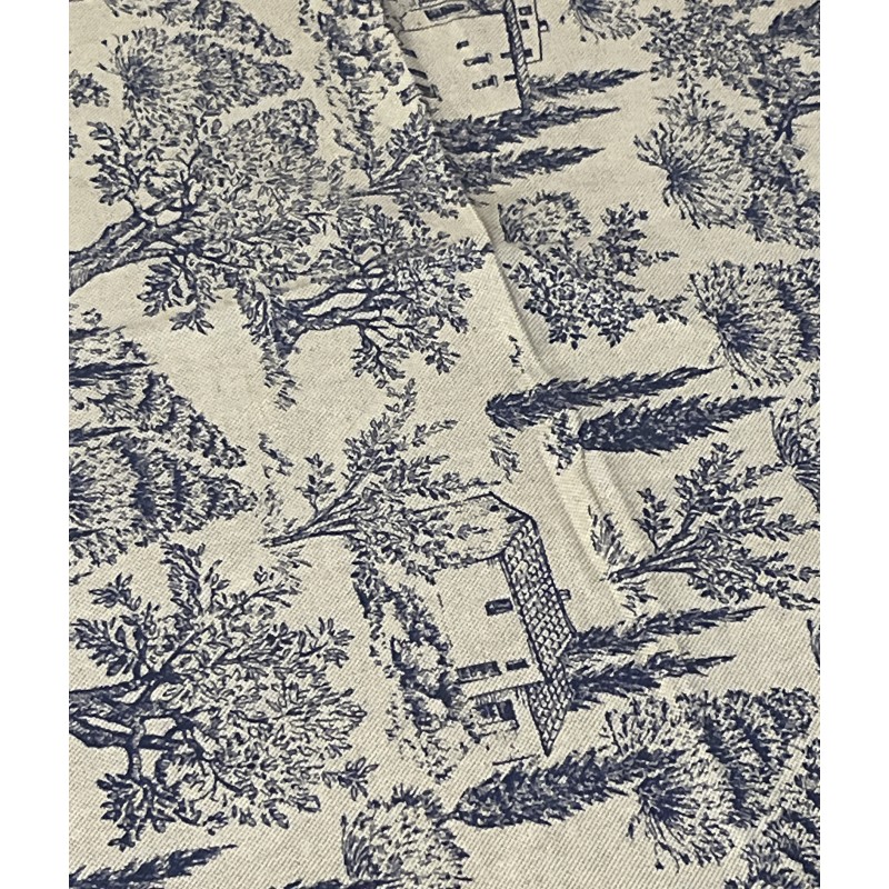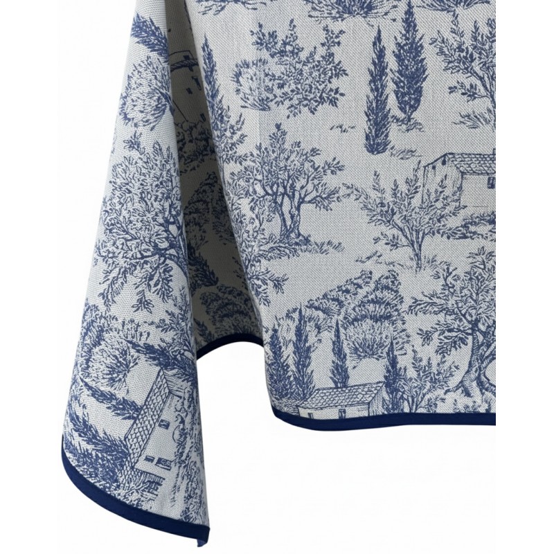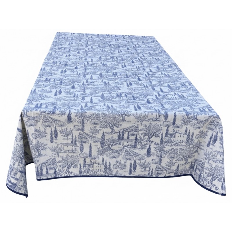 - Motif : Paysages de Provence et oliveraies bleu indigo sur fond naturel