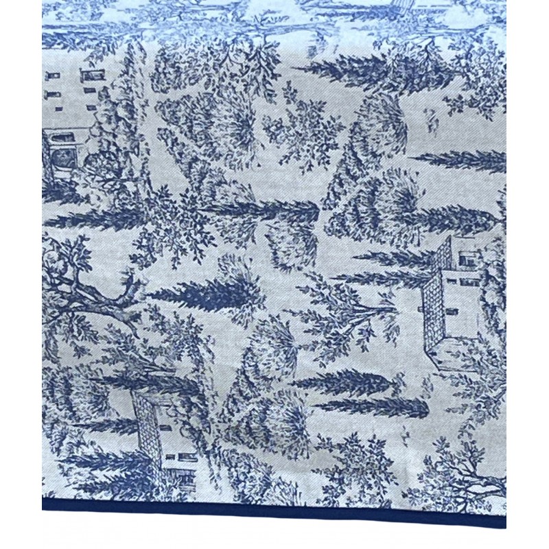 - Finition contrastée : Un biais bleu marine souligne avec précision les lignes de la nappe, assurant un tombé et une grande résistance aux bordures.