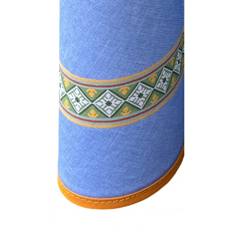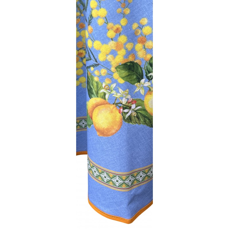 Nappe ronde Citron et Mimosa sur fond bleu "Douceur de Provence"