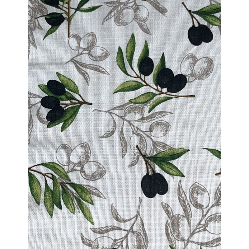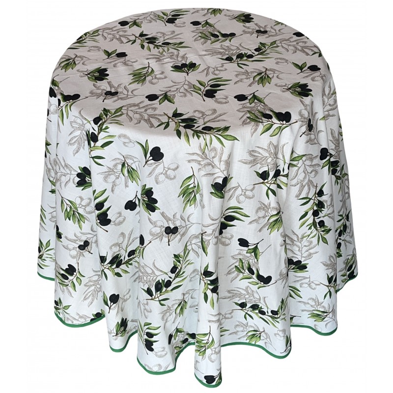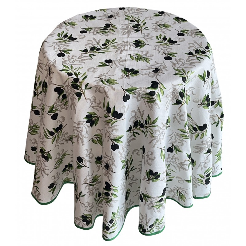 Incitez à la convivialité et au partage avec la nappe ronde "Douceur d'Olive". Son motif intemporel de rameaux d'olives noires et de feuillages verts sur fond clair apporte instantanément le charme et l'authenticité du Sud à votre salle à manger ou votre terrasse.