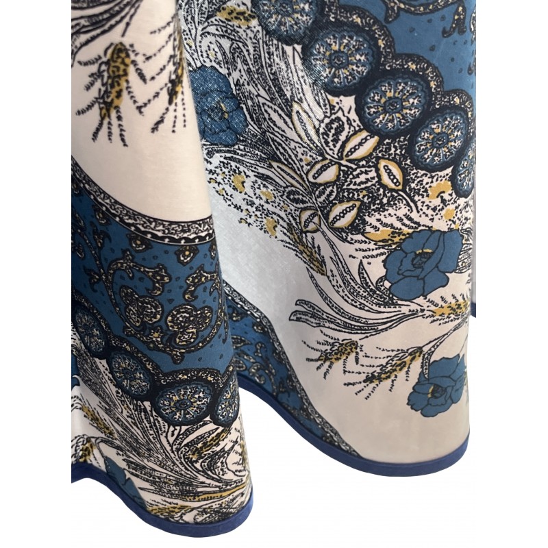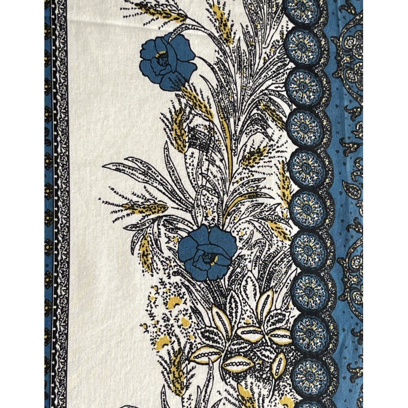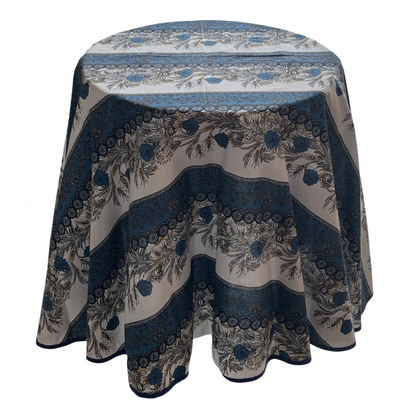 Nappe ronde fleurie et ornée 100% coton "Bleu de Provence"