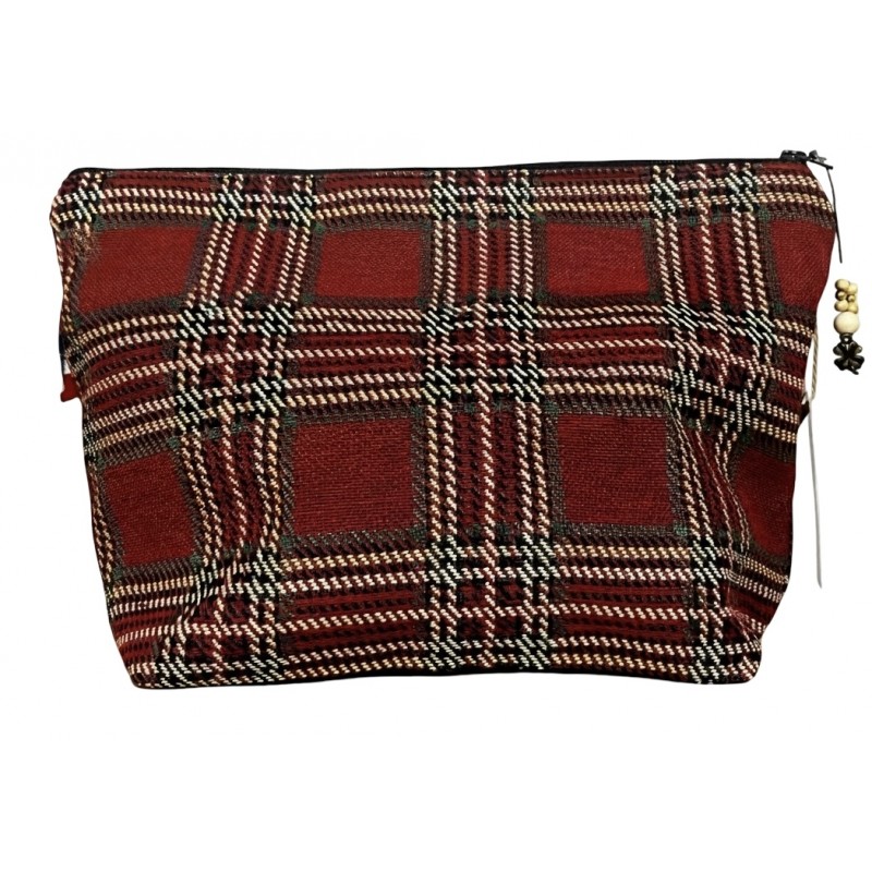 Alliez praticité et élégance intemporelle avec notre trousse artisanale "l'authentique écossaise". Conçue dans le tissu Jacquard d'une grande robustesse, cette pochette aux motifs tartan bordeaux est l'accessoire indispensable pour organiser vos affaires avec style, que ce soit à la maison ou en voyage.