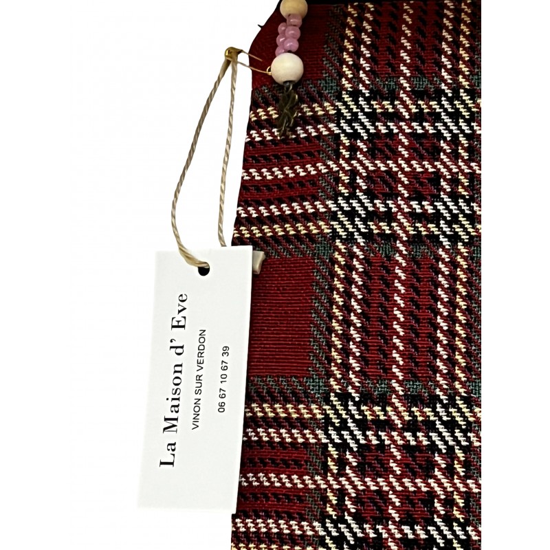 - Coloris : Rouge bordeaux, noir et beige (motif écossais)