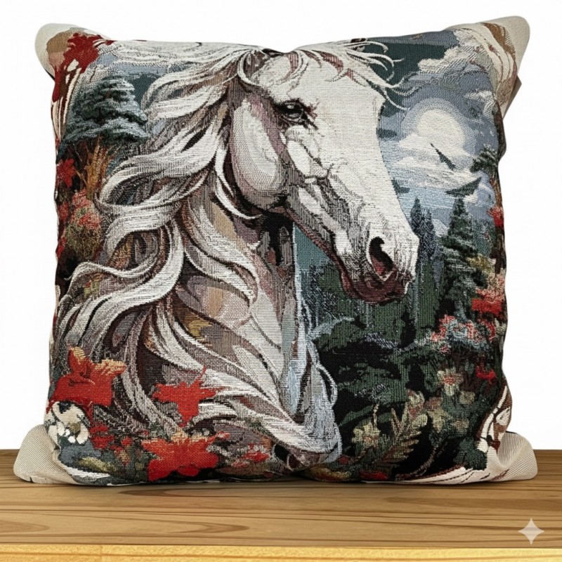 Housse de coussin déhoussable cheval - Jacquard