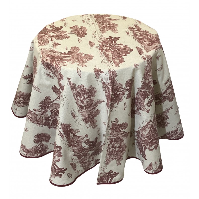 Nappe ronde panama coton / lin toile de Jouy